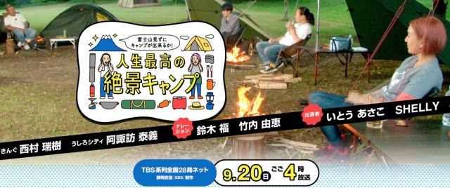 2020年9月20日(日)16:00〜T B S系 「富士山見ずにキャンプが出来るか!人生最高の絶景キャンプ」のT V番組にキャンピングカーをご紹介していただきました。