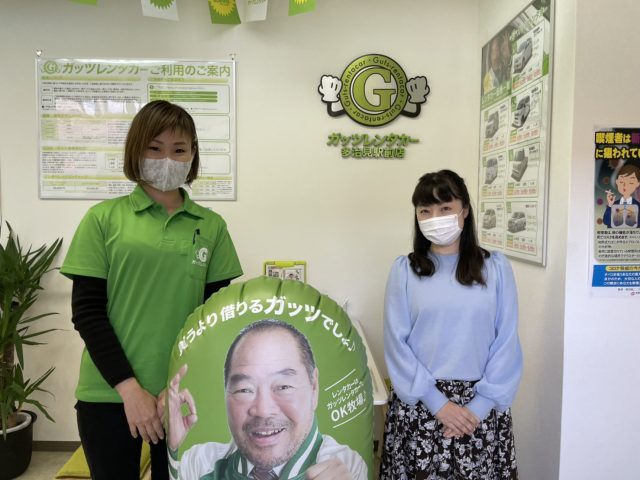 インタビューを受けるのは、ガッツレンタカー多治見駅前店の風間店長です。