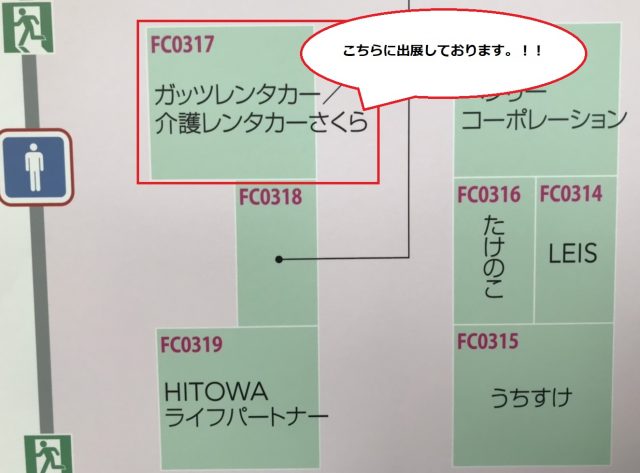 今年のガッツレンタカーのブース位置は「FC0317」。