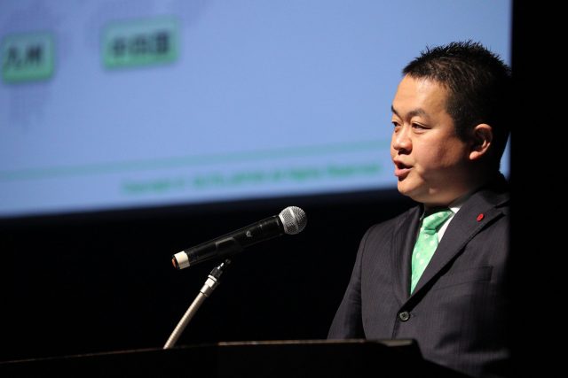 まずは㈱ガッツ・ジャパン 代表取締役 中村 忠司の開会宣言。