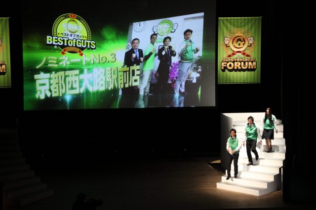 ガッツレンタカーの150店舗の中でも優秀な3店舗「朝霞台店」、「安城店」、「京都西大路駅前店」によるプレゼンテーションです。