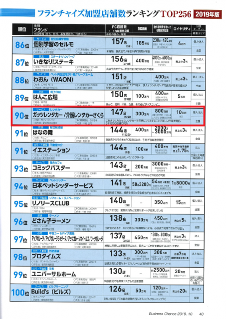 ビジネスチャンス10月号「加盟店舗数 ランキングTOP256」