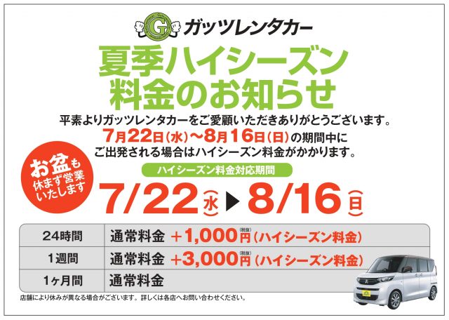 平素よりガッツレンタカーをご利用頂き誠にありがとうございます。