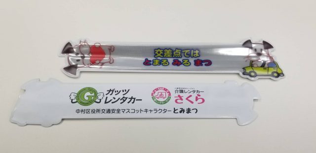 こちらの反射バンドは地域の小さなお子様や高齢者の方に交通安全教室やお祭りなどを通じて無料配布されます。