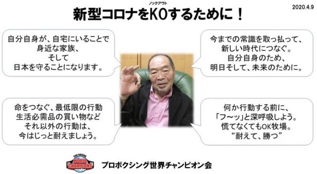 世界チャンピオン会会長であるガッツ石松さんから新型コロナウイルスK.Oメッセージを頂きました!