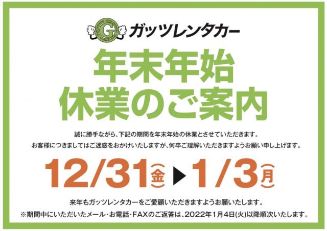 平素よりガッツレンタカーをご利用頂き誠にありがとうございます。