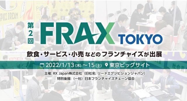 弊社、株式会社ガッツ・ジャパンは2022年1月13日(木)~1月15日(土)の3日間、東京ビッグサイトにて開催されるフランチャイズショー「第2回FRAX TOKYO」に出展いたします。