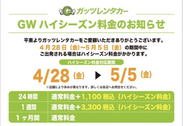 ガッツレンタカーからのお知らせ