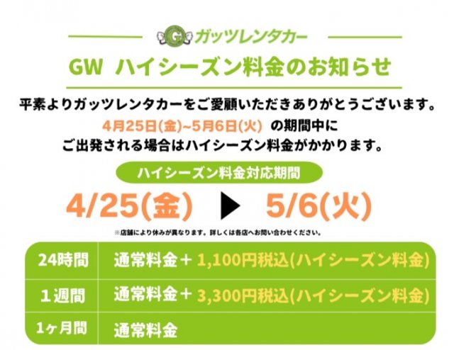 ガッツレンタカーからのお知らせ