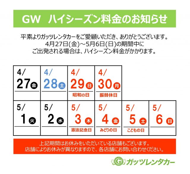 平素よりガッツレンタカーをご愛顧いただき、誠にありがとうございます。