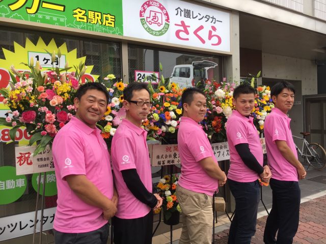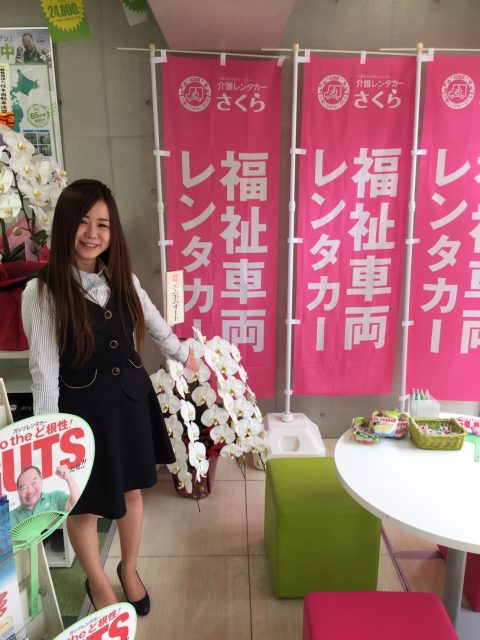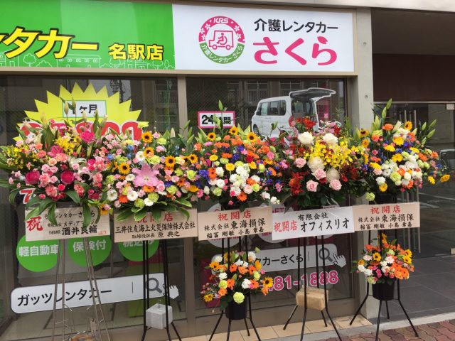 福祉車両が『もっと身近に』『もっと気軽に』をテーマに利用者が快適で安全に、利用しやすい価格でドライブを楽しめる社会を作りたい…。そんな想いで立ち上げた、ガッツ・ジャパンの新事業体『介護レンタカーさくら』が、お祝花と共に満開でオープンしました‼