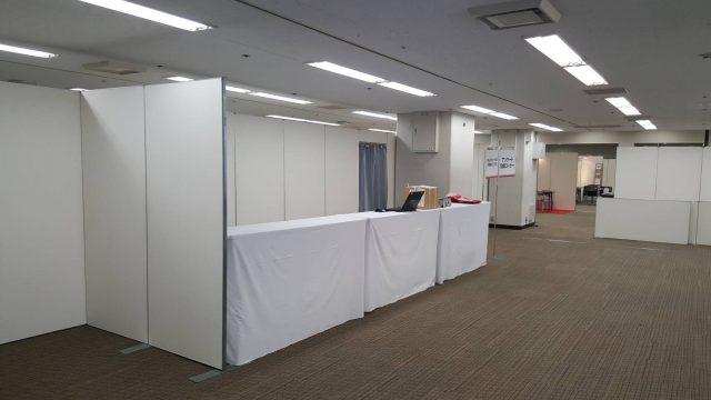 閑散とした出店会場は何もなく、ここからブースを作り上げる。