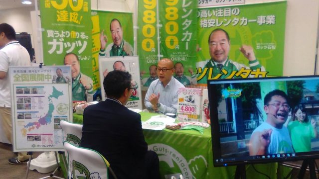 ガッツレンタカーのビジネスプラン資料をお渡しし、担当者と生の声でのご説明。そして情報交換をし、熱い想いをお伝えする。今年100店舗達成の為、説明するその姿は真剣そのもの。