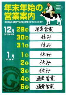 年末年始の営業日のお知らせです!