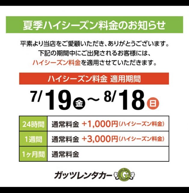 格安レンタカーのガッツレンタカー!GWや夏季、年末年始の営業情報や入庫車情報など、ガッツレンタカー 中央店から皆様へのお知らせです。