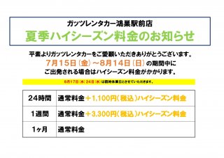 【吹上駅前店】7・8月定休日・ハイシーズン料金のご案内