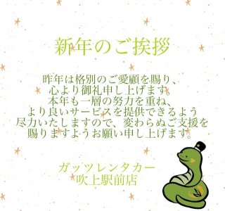 格安レンタカーのガッツレンタカー!GWや夏季、年末年始の営業情報や入庫車情報など、ガッツレンタカー 吹上駅前店から皆様へのお知らせです。