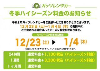 2023年、冬季ハイシーズン期間のお知らせです。