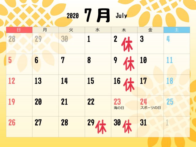 7月の23日(海の日)24日(スポーツの日)は営業いたします^^