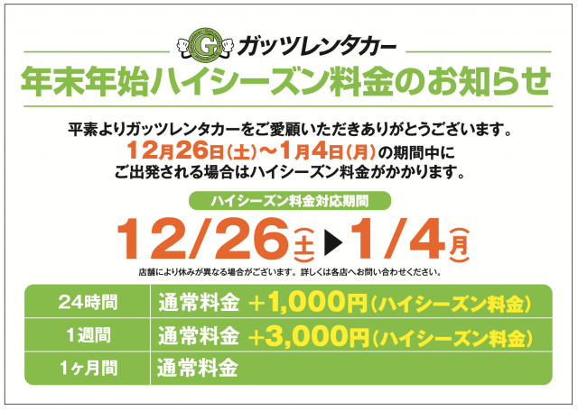 格安レンタカーのガッツレンタカー!GWや夏季、年末年始の営業情報や入庫車情報など、ガッツレンタカー 福岡・博多店から皆様へのお知らせです。