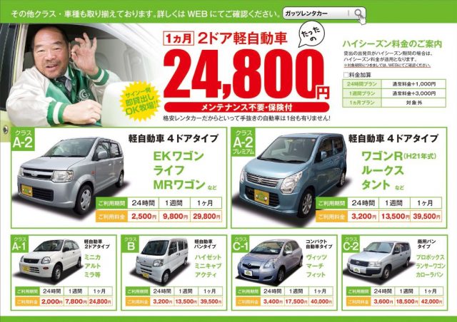 格安レンタカーのガッツレンタカー!GWや夏季、年末年始の営業情報や入庫車情報など、ガッツレンタカー 福岡・博多店から皆様へのお知らせです。