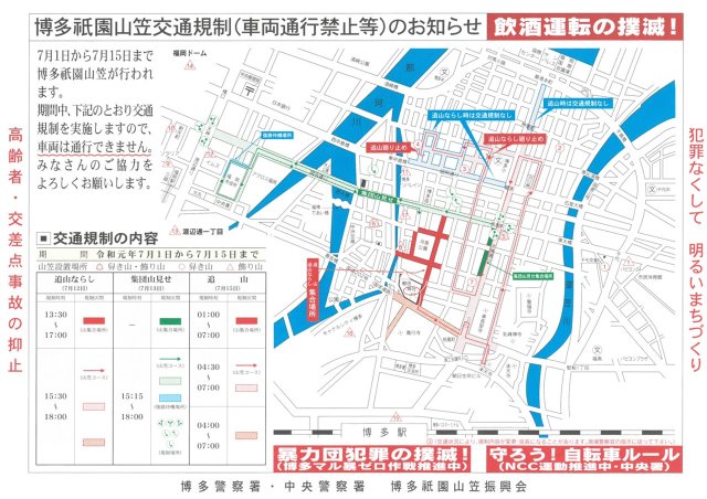 博多祇園山笠開催に伴い、7月1日から7月15日まで博多祇園山笠が行われます。