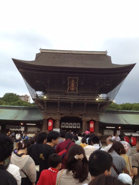 筥崎宮から博多湾に向かって露店がたくさん並んでとても賑やかなお祭りです。