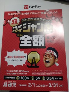 本日2月1日~3月31日まで【日本全国全額チャンス!超PayPayジャンボ】