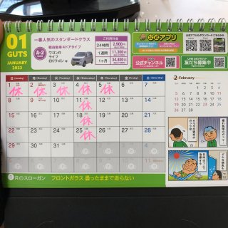 1月定休日のご案内です。
