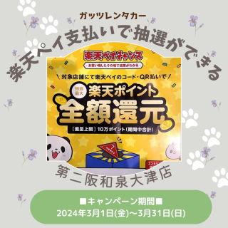 【泉大津(和泉府中)店】楽天ペイチャンス!楽天ペイ払いで、”楽天ポイント全額還元”の抽選!!