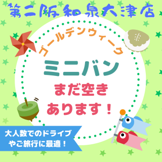 【泉大津(和泉府中)店】ゴールデンウィーク、ミニバンまだ空きあります!
