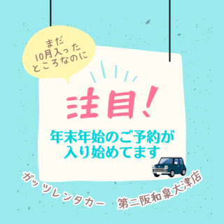 格安レンタカーのガッツレンタカー!GWや夏季、年末年始の営業情報や入庫車情報など、ガッツレンタカー 第二阪和泉大津店から皆様へのお知らせです。