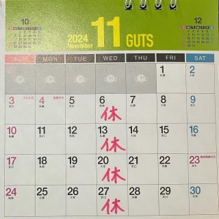 2024年11月の定休日のお知らせです。
