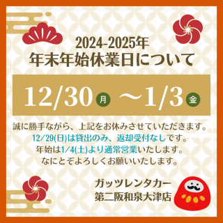 【泉大津(和泉府中)店】2024-2025年 年末年始休業日について