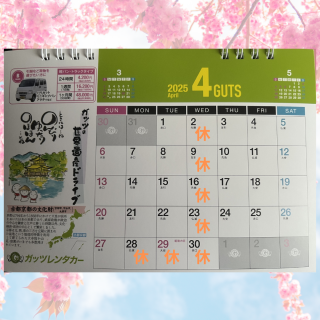 格安レンタカーのガッツレンタカー!GWや夏季、年末年始の営業情報や入庫車情報など、ガッツレンタカー 第二阪和泉大津店から皆様へのお知らせです。