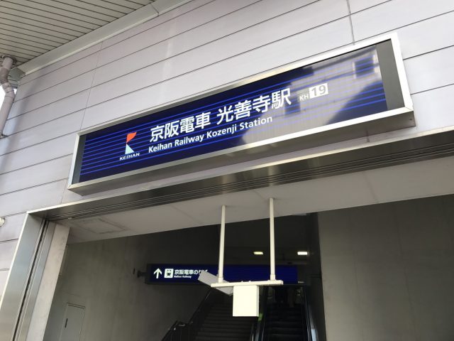 光善寺駅改札を東出口に進み、駅を出て枚方公園方面に進みます。