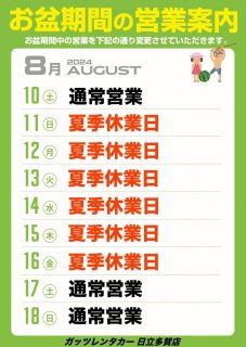 【日立多賀店】夏季休業日のお知らせ