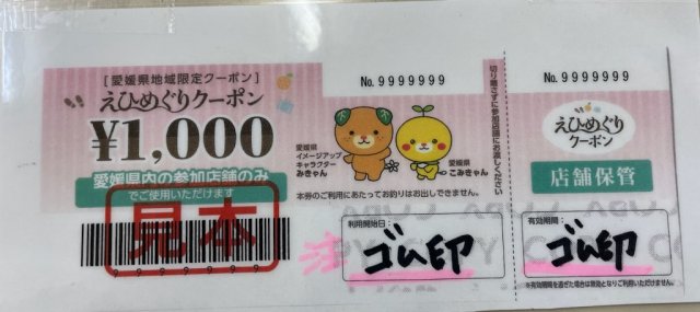 この度、今治店は「えひめぐり みきゃん旅割」クーポンの加盟店になりました。