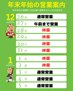 年末年始の休業についてお知らせです🏁