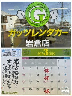 ガッツレンタカー岩倉店3月の定休日