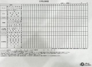 こちらの日常点検表を基にお車に乗る前の点検をお願い致します。