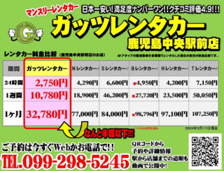 格安レンタカーのガッツレンタカー!GWや夏季、年末年始の営業情報や入庫車情報など、ガッツレンタカー 鹿児島中央駅前店から皆様へのお知らせです。