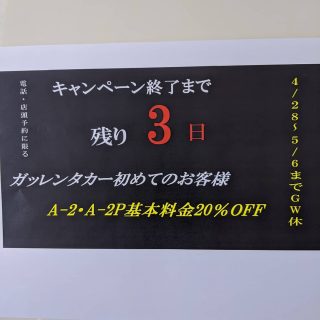 格安レンタカーのガッツレンタカー!GWや夏季、年末年始の営業情報や入庫車情報など、ガッツレンタカー 加古川店から皆様へのお知らせです。