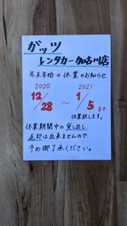 格安レンタカーのガッツレンタカー!GWや夏季、年末年始の営業情報や入庫車情報など、ガッツレンタカー 加古川店から皆様へのお知らせです。