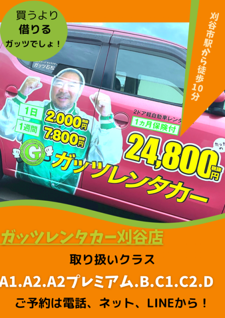 格安レンタカーのガッツレンタカー!GWや夏季、年末年始の営業情報や入庫車情報など、ガッツレンタカー 刈谷店から皆様へのお知らせです。