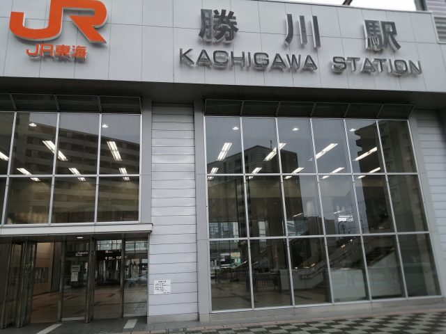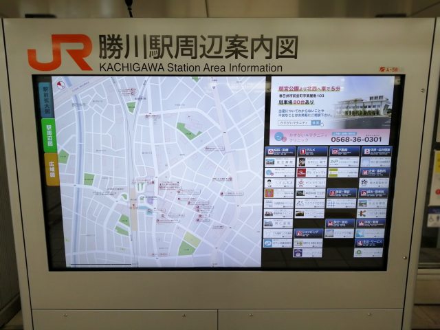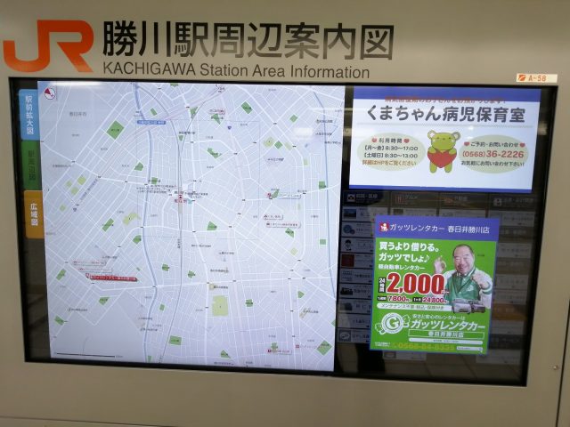 最寄り駅である「JR勝川駅」に案内広告を