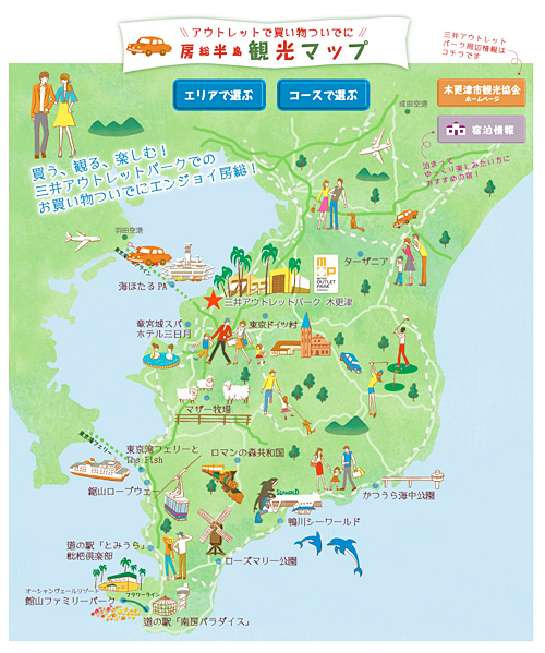 木更津は東京から高速バスだと1時間程。都心に住んでいる方も高速バスでいらっしゃってレンタカーをご利用し房総半島をドライブされる方も居ます。