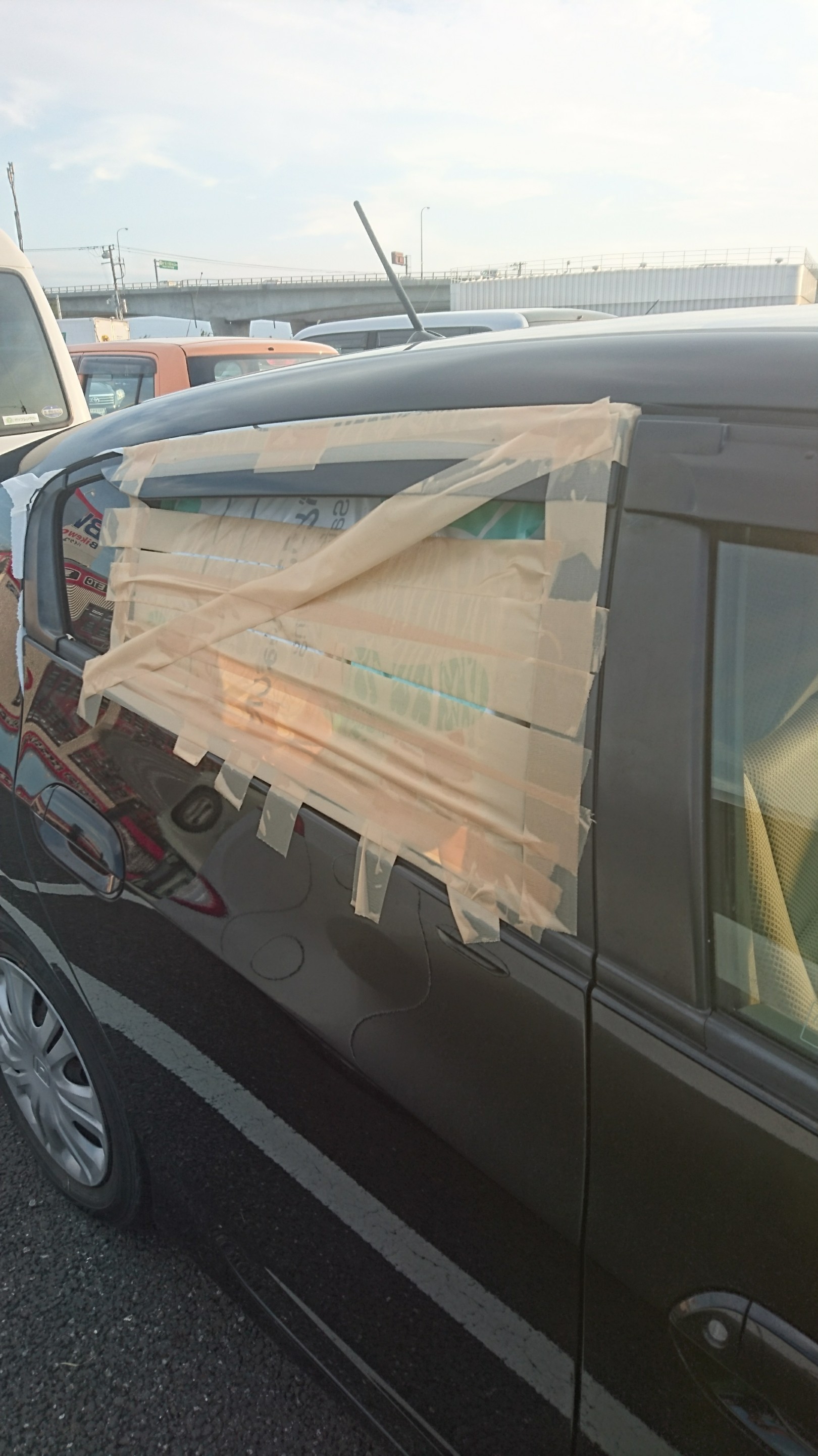 店舗では飛散物により、販売車両の窓ガラスが割れてしまいました。