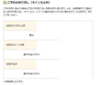 ※出発日の3日以上前→無料、出発日の2~1日前→基本料金の30%、