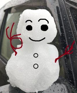 びちゃびちゃの雪をかき集めオラフを作成。